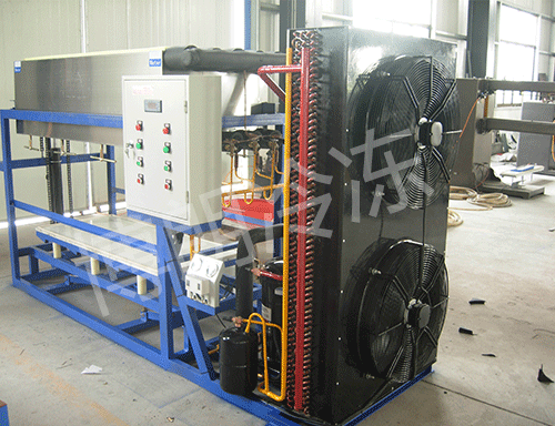 l 直冷块冰机: 一种制冷剂在蒸发器内蒸发,通过蒸发器直接冷却水进行制冰的新型制冰机;
